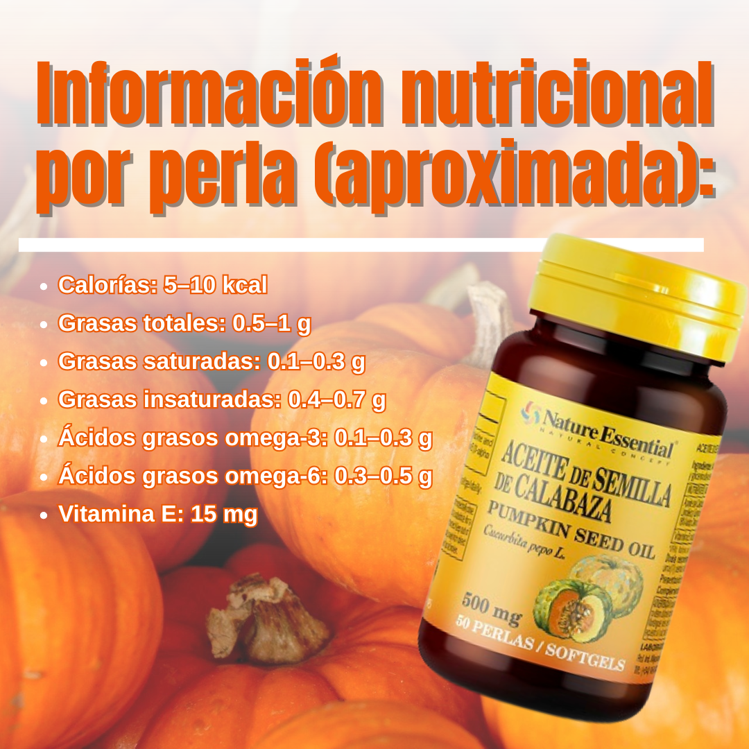 Descubre el poder natural del Aceite de Semilla de Calabaza 500 mg para promover tu bienestar general. Con su rica combinación de ácidos grasos esenciales y vitamina E, este suplemento es tu aliado perfecto para mantener la salud de la próstata, la piel y el corazón. ¡Un toque de bienestar en cada perla!