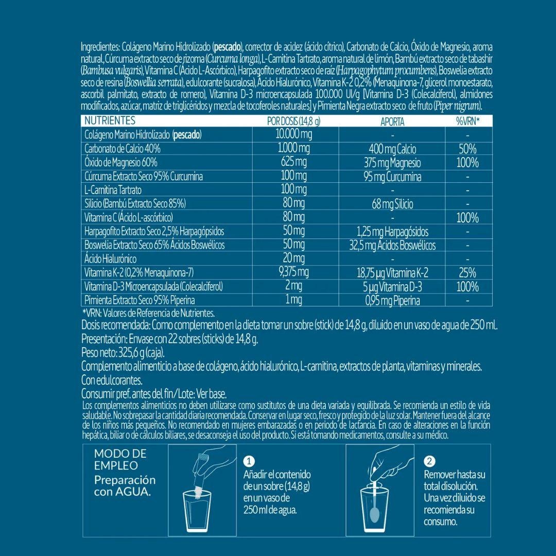 Dosis recomendada: 1 stick al día (14,8 g), disuelto en 250 ml de agua.