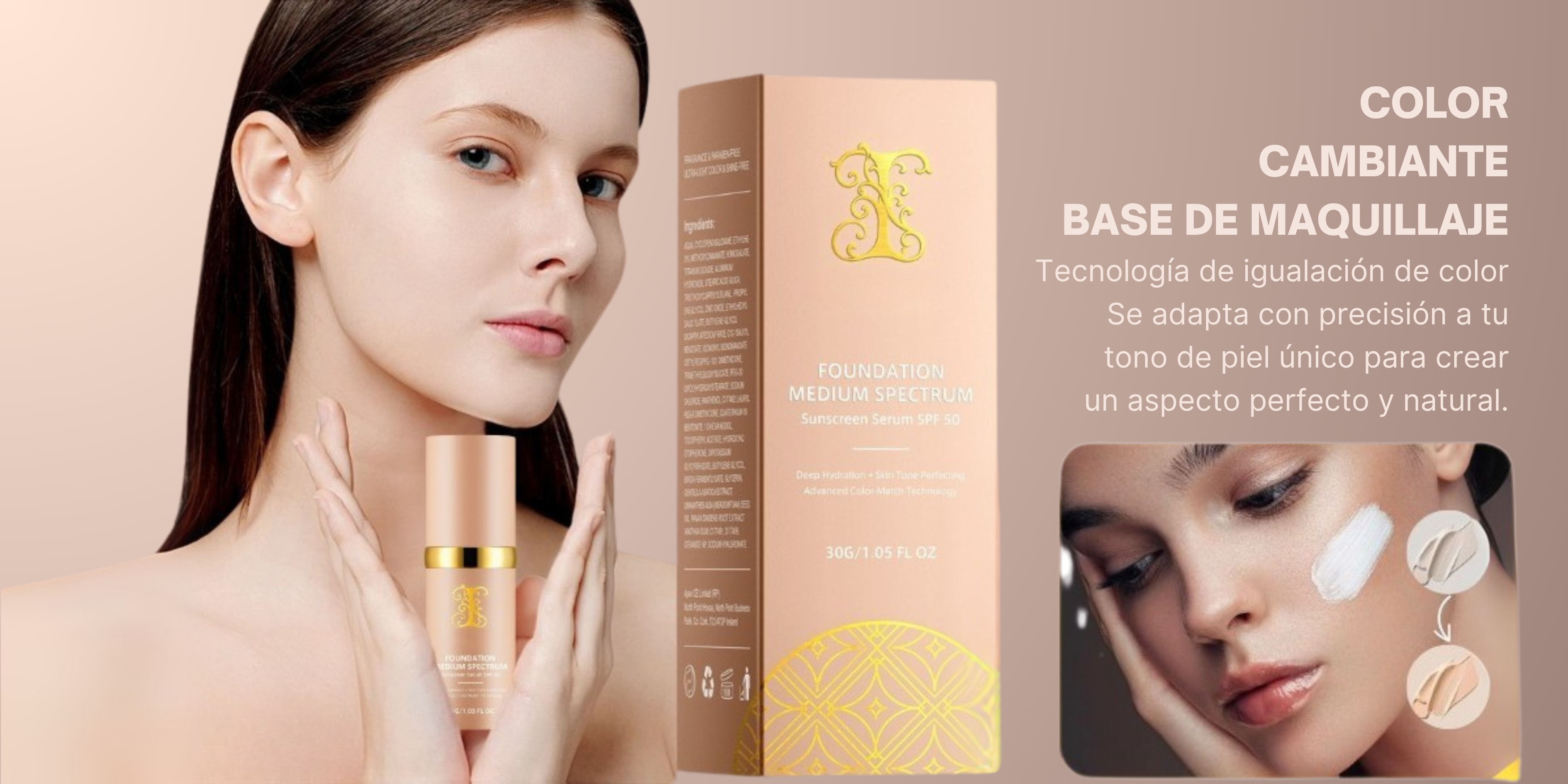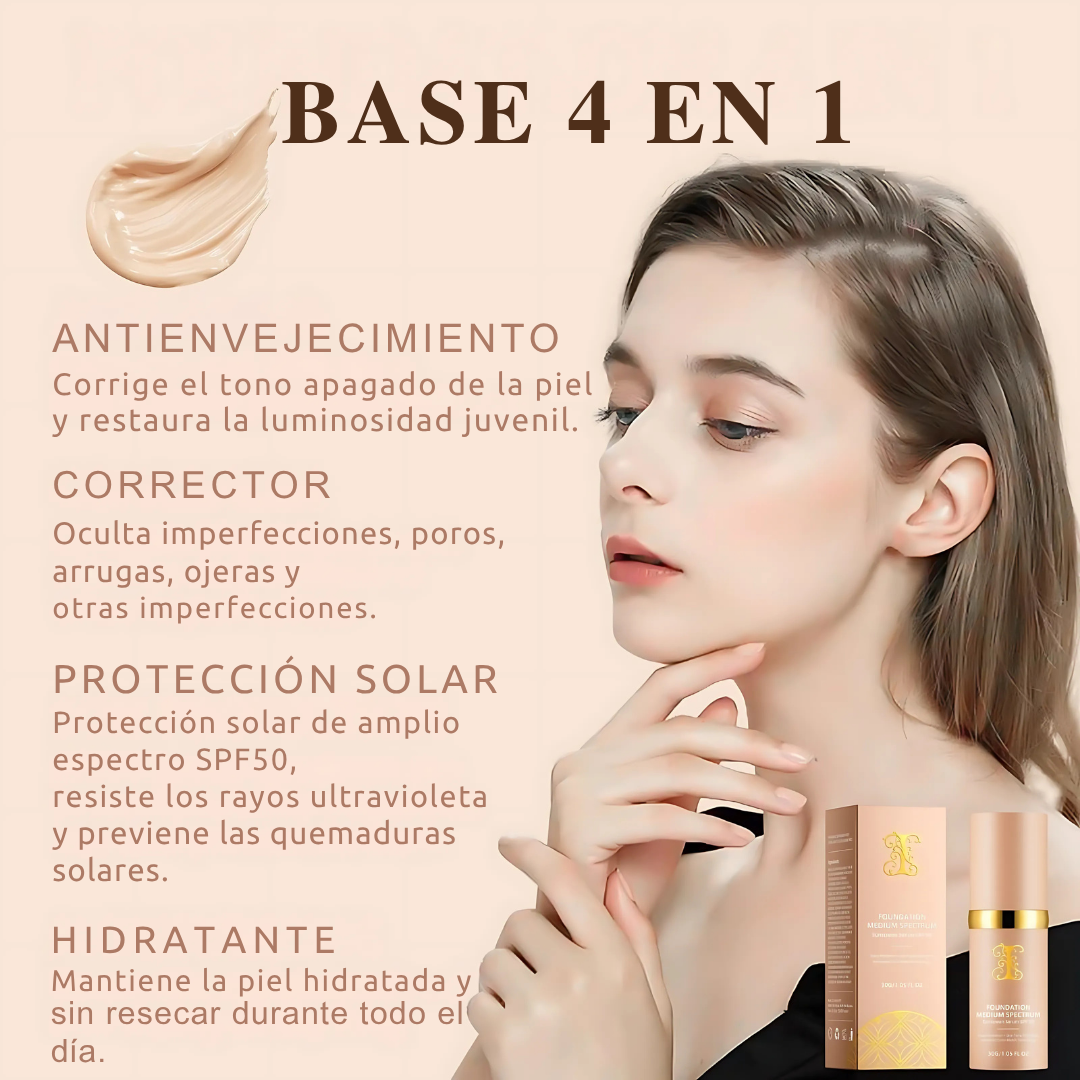 Cobertura impecable, hidratación profunda y protección solar. ¡Todo en uno! ✨
