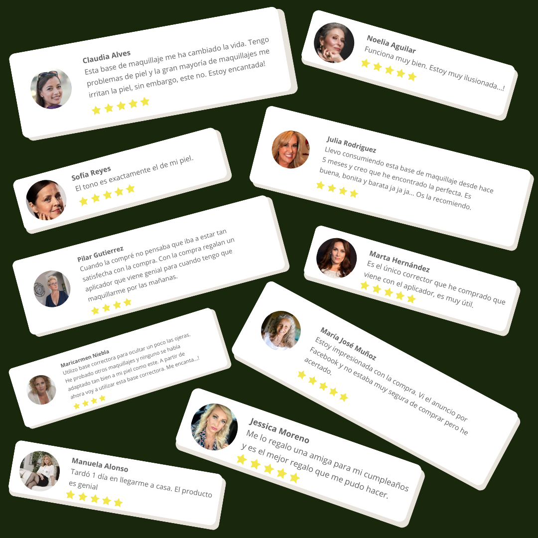 "He probado muchas bases, pero esta es diferente. No solo cubre mis manchas, sino que el colágeno en la fórmula ha mejorado la textura de mi piel. ¡Además, no deja sensación grasosa! Ideal para todo el día, incluso cuando sudo."